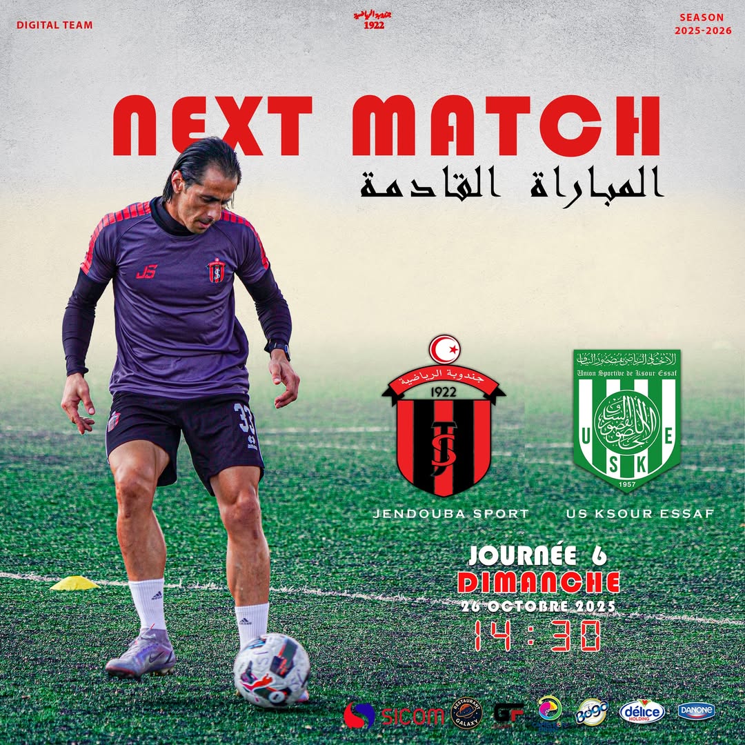 المباراة القادمة الإتحاد الرياضي بقصور الساف الملعب البلدي معز الطويـهري الأحد 26 أكتوبر 2025 الساعة 14:30 الرابطة المحترفة الثانية 2025 / 2026 – الجولة السادسة #JS_VS_USKE #digital_js Vues: 6